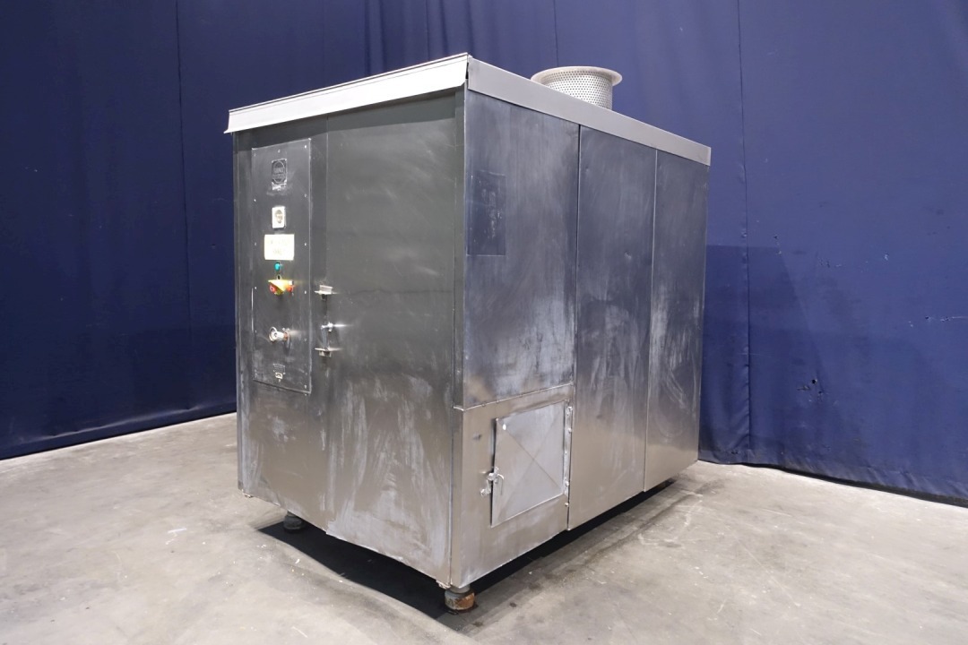 High pressure homogeniser. 1 Stage with hydraulic pressure control (automatic regulation). 3 Pistons, piston diameter: 63 mm and stroke: 80 mm. Stainless steel cladded in sound-insulated cabinet <80dB (A) (Rannie Blue Top Milieu). Connections: 1 x 2" Din and 1 x 2" SMS. Current motor power: 110 kW - 209 A - 1.480 rpm - 50 Hz - 3x380 V. Maximum working pressure in current configuration with this motor 220 bar. Amount of cooling water, 200 l/h - lubricating oil 80 ltr - hydraulic oil 4 ltr. Fan for cooling of main motor is fitted on top of the cabinet. Control panel (no CPU or MCC). 1 x Pressure Manometer and 1 x drain tap. Flowswitch, circulation pump and external PHE on cooling water. Pulsation demper on inlet and outlet. Remote pressure control. Total dimensions: 230x160x250 (lxwxh) cm - weight: 3.910 kg. With operation manual and parts list.