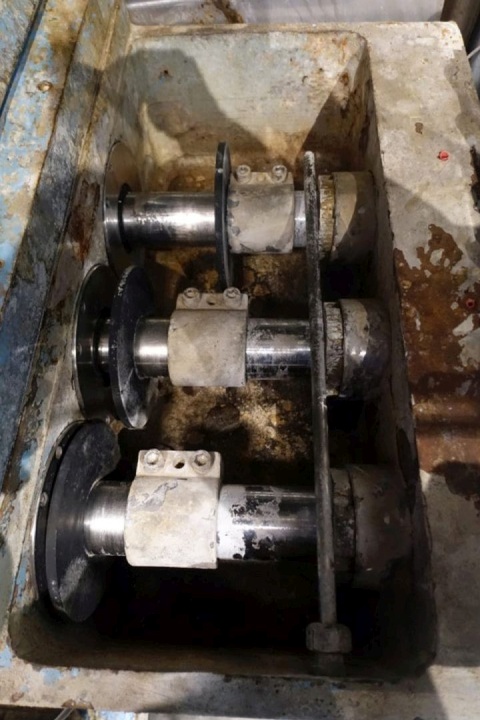 High pressure homogeniser. 1 Stage with hydraulic pressure control (automatic regulation). 3 Pistons, piston diameter: 63 mm and stroke: 80 mm. Stainless steel cladded in sound-insulated cabinet <80dB (A) (Rannie Blue Top Milieu). Connections: 1 x 2" Din and 1 x 2" SMS. Current motor power: 110 kW - 209 A - 1.480 rpm - 50 Hz - 3x380 V. Maximum working pressure in current configuration with this motor 220 bar. Amount of cooling water, 200 l/h - lubricating oil 80 ltr - hydraulic oil 4 ltr. Fan for cooling of main motor is fitted on top of the cabinet. Control panel (no CPU or MCC). 1 x Pressure Manometer and 1 x drain tap. Flowswitch, circulation pump and external PHE on cooling water. Pulsation demper on inlet and outlet. Remote pressure control. Total dimensions: 230x160x250 (lxwxh) cm - weight: 3.910 kg. With operation manual and parts list.