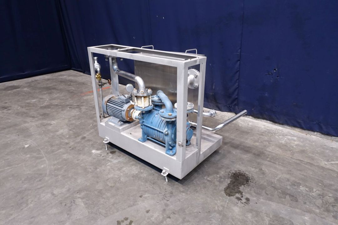 The SIHI sterling liquid ring vacuum pump LPHE is a two-stage positive displacement pump in a simple but robust design with various specific features. Such as non-polluting due to virtually isothermal compression, oil-free (no lubrication in the pressure chambers), pumping of almost all gases and vapors, small quantities of system fluid can be pumped, easy to maintain and reliable in operation, low noise emissions and virtually vibration-free running, standard O -ring seal, central drainage and no metallic contact with rotating parts. SIHI LPHE45311 - BN1350140 - 2609005. Engine; VEM K219112 - 4,0 kW - 8,8 A - 1435 rpm - 50 Hz. Total dimensions: 110 x 70 x 97 cm.