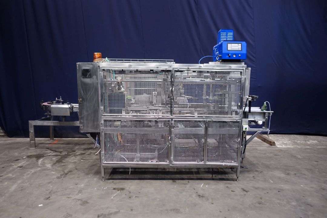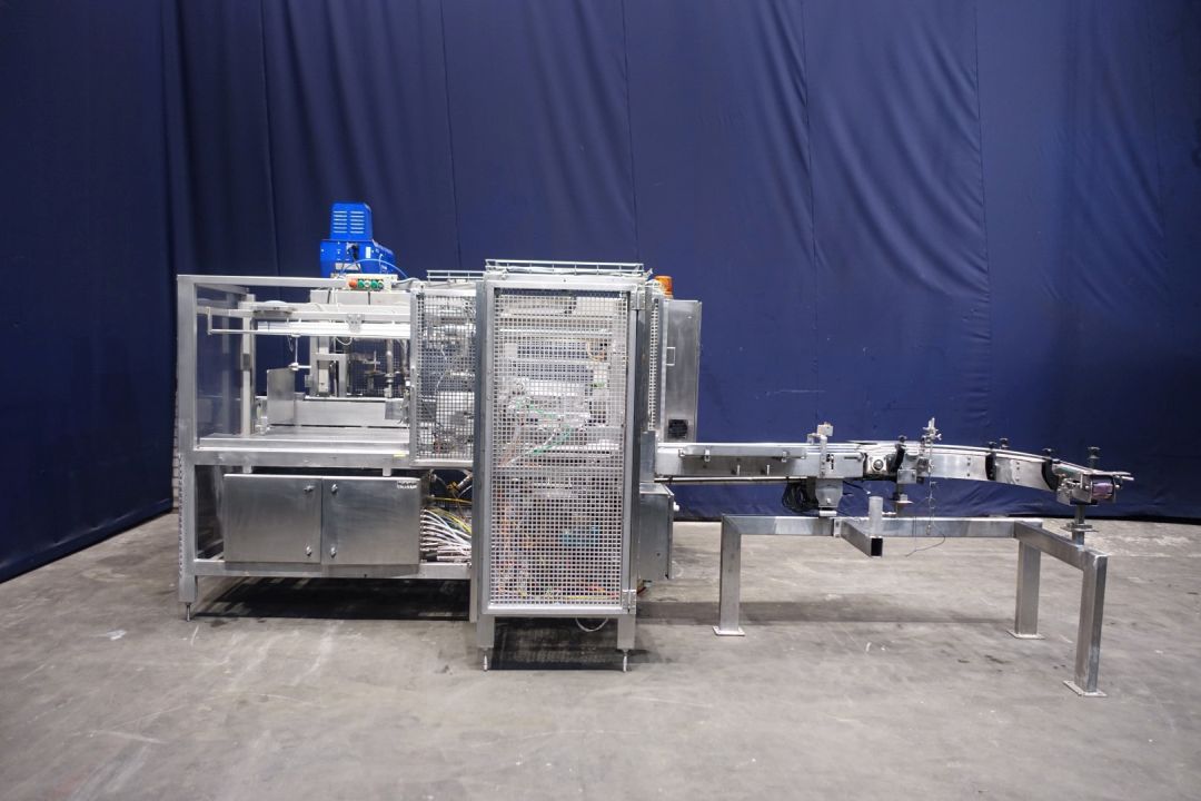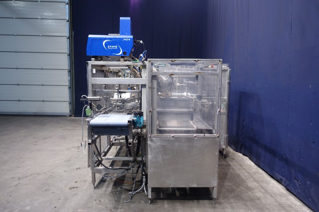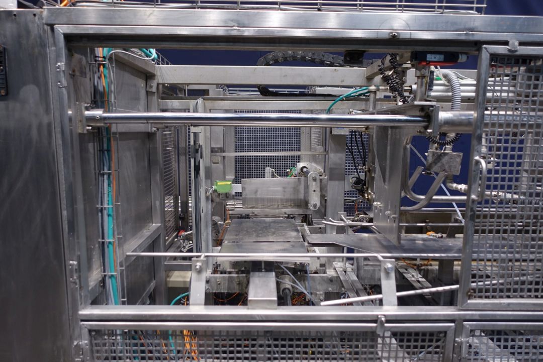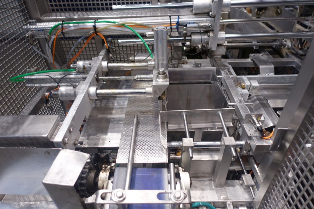 Fully automatic packer, for American folding boxes. Used for 200gr bricks of foil 90 x 53 x 44 mm packed and wrapped. Current dimensions of the box: 375 x 290 x 135 mm. 5 x 4 packs x 3 layers = 60 packs. Including hotmelt Valco Melton model: NC4 (1 tube). Modicon controls. Has been running together with SIG FD140 foil packing and wrapping machine for margarine (STN15312). Machine dimensions: 270 x 230 x 240 cm. Weigth ca. 1.200 kg's. Some electrical documentation available.