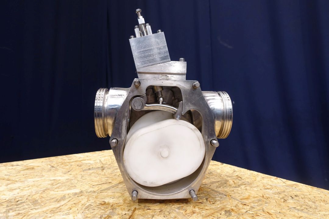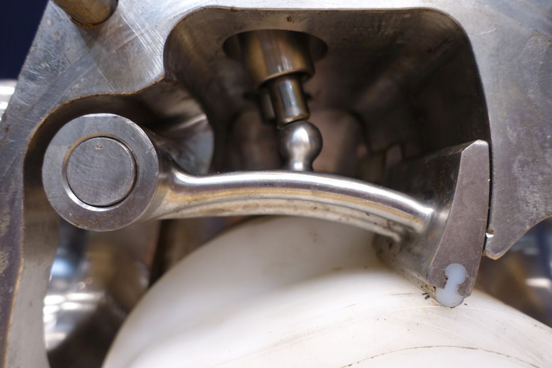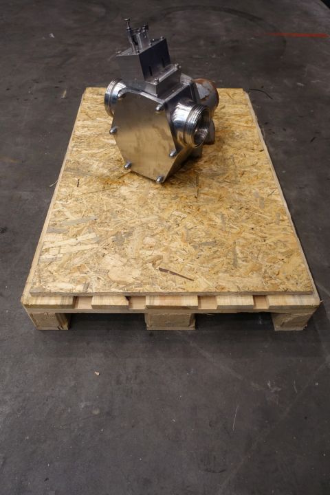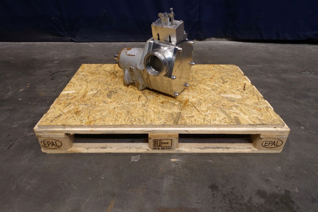 Lobbe pump head with 1 x gummi lobe. Positive displacement pump. Diameter lobbes: 190 mm. Used on butter. No drive work. Connections: (In) 4"SMS / (Out) 4" SMS. Dimensions: 33 x 50 x 47 cm. Weigth 127 kg.