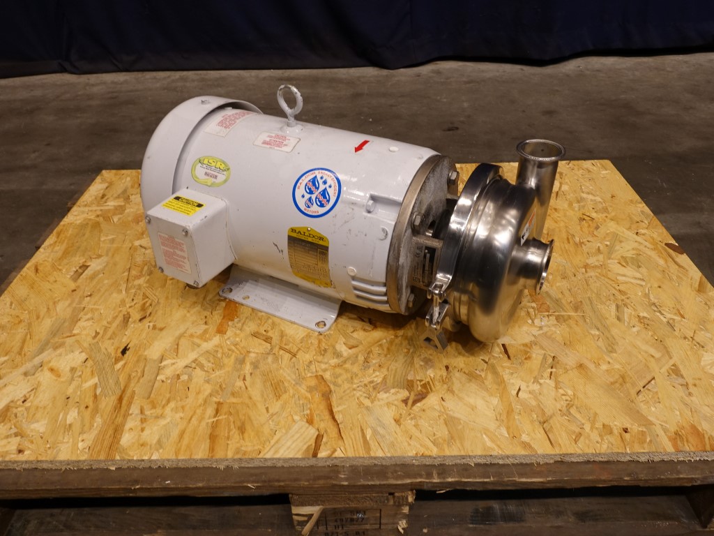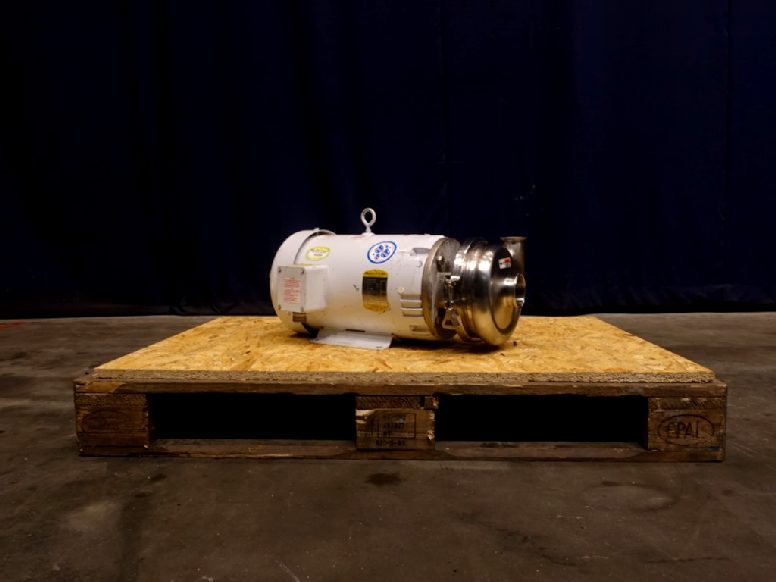 Sanitary centrifugal pump. Current motor: 11 kW - 17,1 A - 3450 rpm - 460 V - 60 hz. Impellor diameter: 145 mm. Connections: 2,5'' / 2'', Clamp.