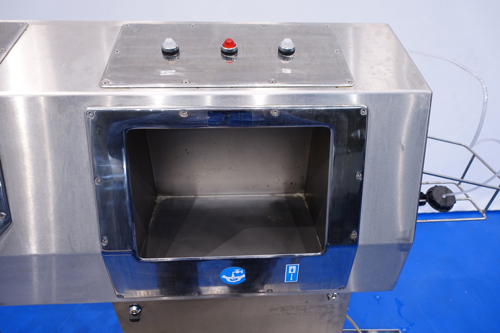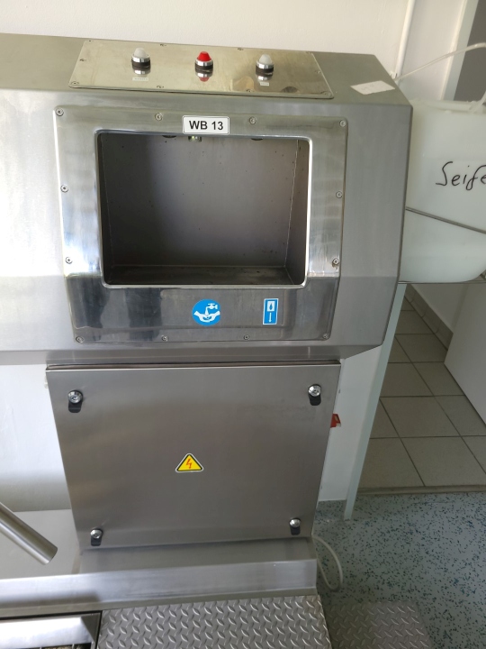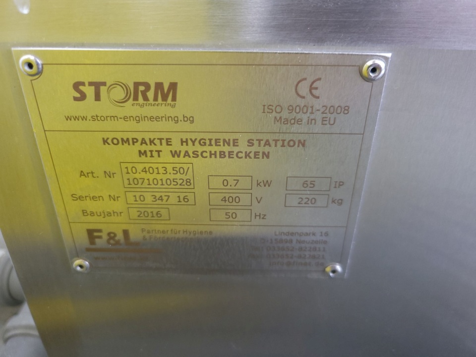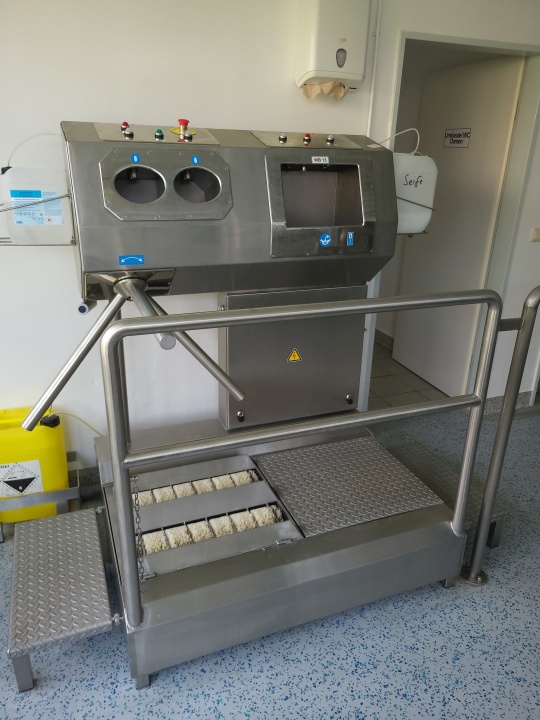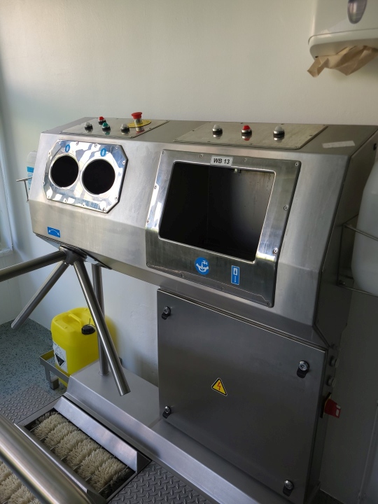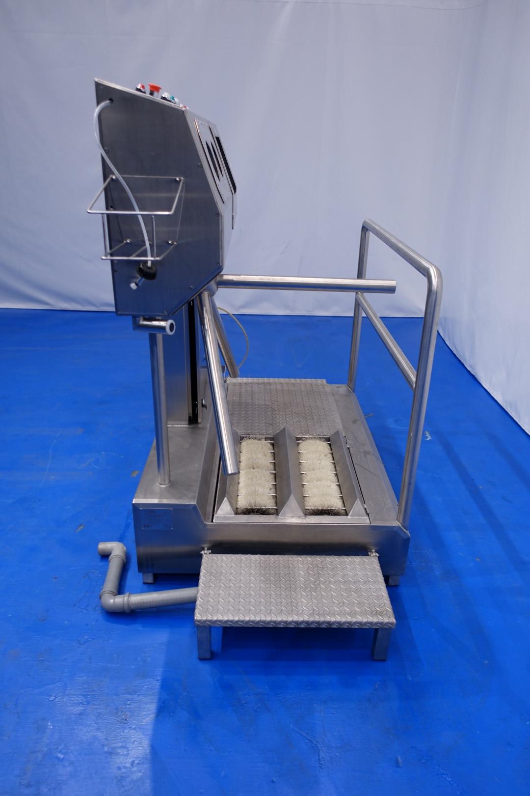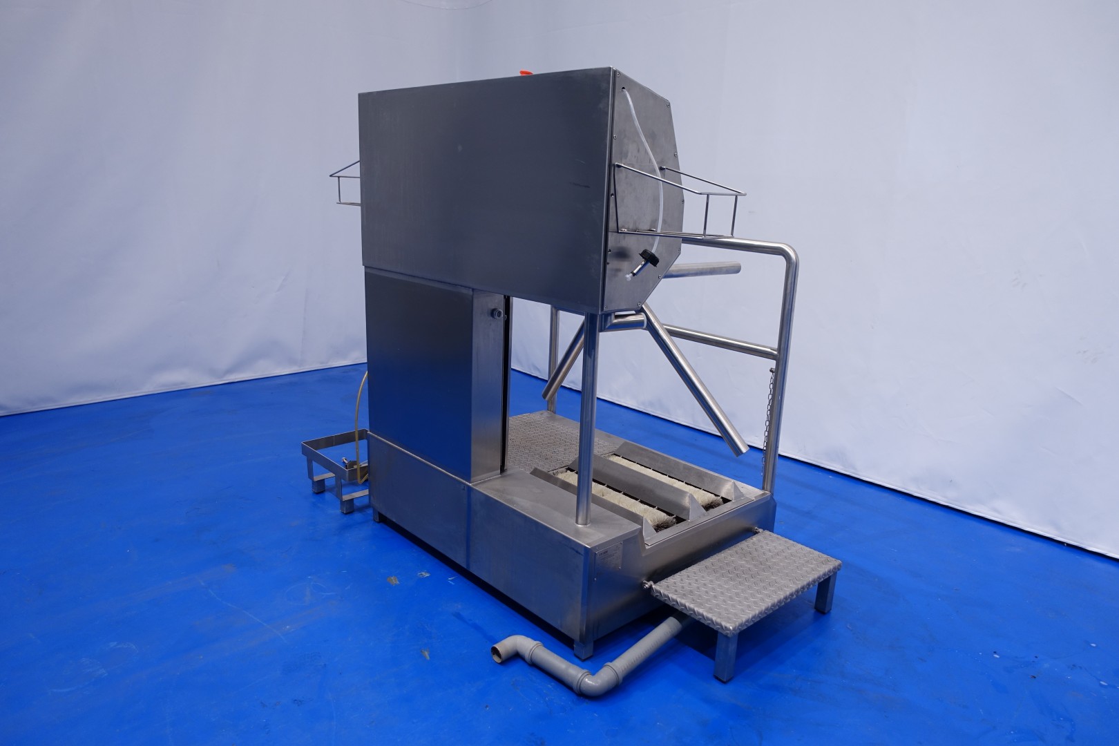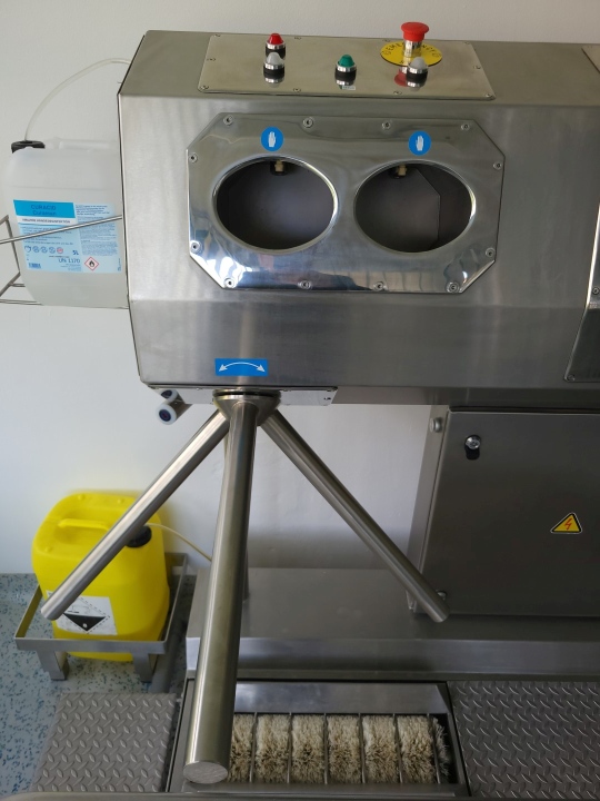 Hygiene station with shoe sole wash scrub, hand wash and desinfect, turnstile cross, acces 0,7kW 220kg