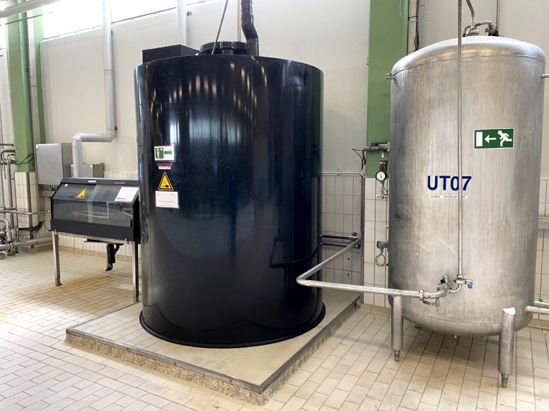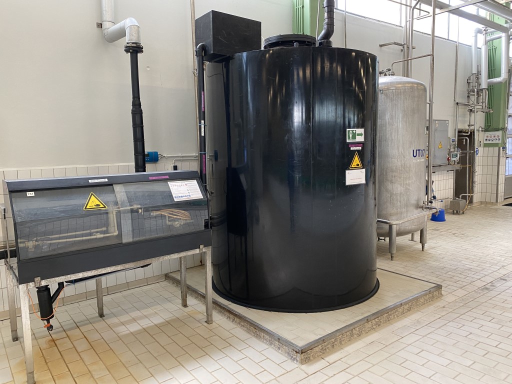Plastic tank for hydrochloric acid. Complete with dosing system for dosing hydrochloric to the brine. This machine will be sold only in combination with a whole cheese line.