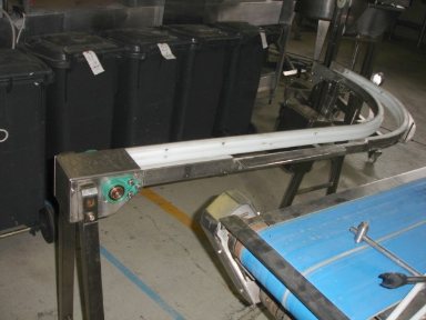 Transport conveyor Transport conveyor with 90 degrees turn to the left. Dimensions: 1,70x0,13x0,95 mtr.