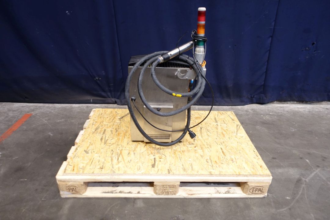 Continous inktjet printer. Used for coding 250 gram butterpacks. Last used in year: 2024 in a French speaking country. Power: 3 A - 120 W - 50 Hz - 100-120V. Dimensions: 42 x 30 x 83 cm. Weigth 54 kg's. Has been running in complete line between Benhil (STN15333) and S&F Packer (STN15336).