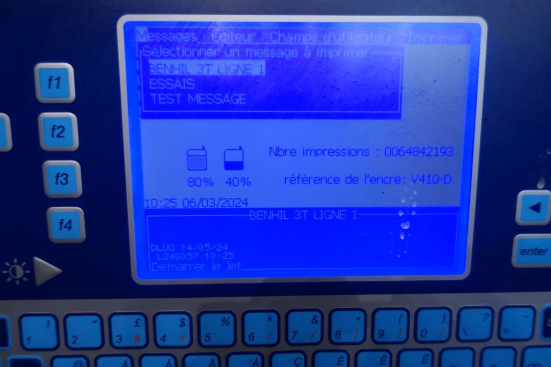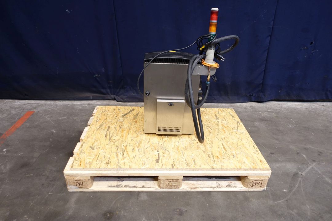 Continous inktjet printer. Used for coding 250 gram butterpacks. Last used in year: 2024 in a French speaking country. Power: 3 A - 120 W - 50 Hz - 100-120V. Dimensions: 42 x 30 x 83 cm. Weigth 54 kg's. Has been running in complete line between Benhil (STN15333) and S&F Packer (STN15336).