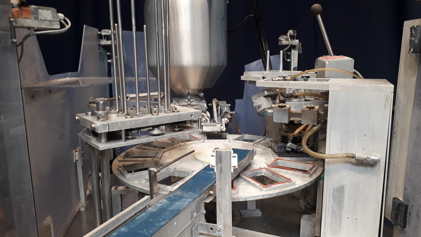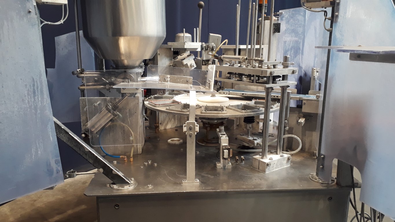 2 head Rotary filler, sealing and snap cap. 5x Format sets with the machine. Currently on the machine format 01: Rectangular ± 150 x 110 mm (only 1 cup filling at the time, capacity max 2000 cups/h), Format 02: round: ± 80 mm, Format 03: round: ± 90 mm, Format 04: round ± 105 mm and Format 05: round ± 110 mm. Stations: cup destacking, main piston doser for viscose products with double jacketed hopper with agitator in hopper for hot fill (CIP cleanable), preformed seal dispending by vacuum, heat sealing, snap-on lid, outfeed on +/- 1 meter single lane outfeed conveyor. Machine has Plexiglas safety guards. Easy format change. Relay controlled with on/off switches.