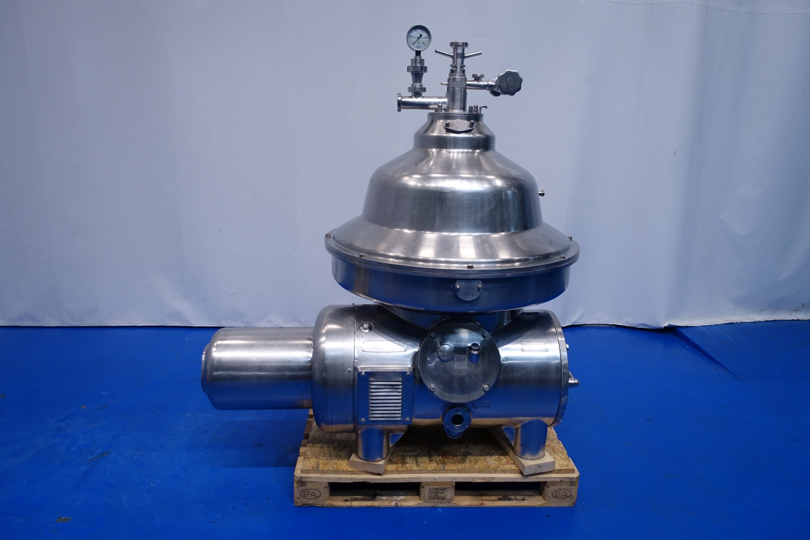Milk/cream separator (skimmer), self cleaning. Bowl speed 4.500 rpm. Including bowl, motor cover, pressure meter on outlet and counter pressure valve, manual flow regulation valve for cream and manouvering water valves. Motor 18,5 kW . Liquid clutch. Set of tools with ring key (incomplete). Total dimensions: 185x95x195 (lxwxh) cm - total weight: 2.079 kg.